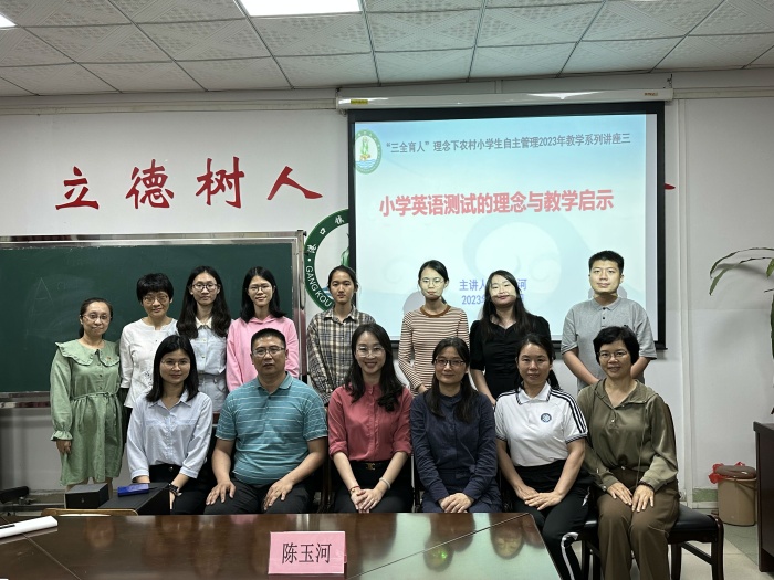 陽(yáng)春四月,草長(zhǎng)鶯飛,在這美好的季節(jié),為提升港口鎮(zhèn)小學(xué)英語(yǔ)教師測(cè)評(píng)素養(yǎng),在英語(yǔ)課堂教學(xué)中有效落實(shí)“教-學(xué)-評(píng)”的一致性,探討如何以評(píng)價(jià)促進(jìn)學(xué)生的有效學(xué)習(xí),真正實(shí)現(xiàn)以測(cè)促教,以評(píng)促學(xué),4月13日下午,中山市港口鎮(zhèn)下南小學(xué)、民主小學(xué)、大豐小學(xué)三校聯(lián)合在下南小學(xué)會(huì)議室進(jìn)行教學(xué)研討,特邀請(qǐng)中山市英語(yǔ)中心教研組長(zhǎng)陳玉河老師蒞臨開展《小學(xué)英語(yǔ)測(cè)試的理念與教學(xué)啟示》專題講座。港口鎮(zhèn)教育和體育事務(wù)中心教研專干吳濤濤老師蒞臨活動(dòng)現(xiàn)場(chǎng)進(jìn)行指導(dǎo)。本次教研共有15位教師參加。