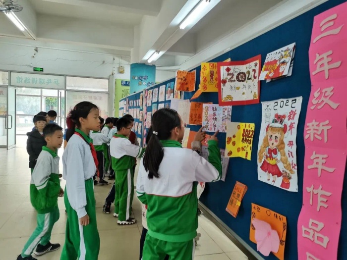 活動前期,在美術(shù)老師的帶領(lǐng)下,各班同學(xué)動手認真繪制年畫、新年賀卡、手抄報及新年詩文等。這些畫作正吸引著同學(xué)們紛紛前來觀賞,校園里充滿了濃濃的節(jié)日氣氛。
