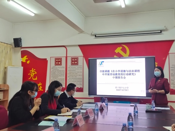 為了掌握市級立項課題“在小學(xué)道德與法治課程中開展勞動教育的行動研究”研究進(jìn)展,精準(zhǔn)把握課題研究方向,把控課題研究質(zhì)量,12月8日下午,課題組在港口鎮(zhèn)中心小學(xué)舉行了中期報告會,港口鎮(zhèn)教研專干吳濤濤老師、港口中學(xué)周智勇主任、港口鎮(zhèn)中心小學(xué)李小健校長、黃美玲副校長、課題主持人林國瑜老師及課題組成員等參加了本次會議。