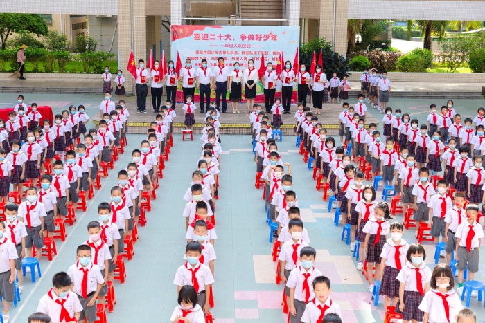 在中國(guó)共產(chǎn)黨第二十次全國(guó)代表大會(huì)即將召開之際,廣東博文學(xué)校少工委在學(xué)校黨支部的帶領(lǐng)下,積極完善關(guān)于構(gòu)建少先隊(duì)員階梯式成長(zhǎng)的激勵(lì)體制,旨在增強(qiáng)少先隊(duì)員的光榮感和使命感。廣東博文學(xué)校少工委于2022年6月1日莊嚴(yán)舉行“喜迎二十大,爭(zhēng)做好少年”一年級(jí)入隊(duì)儀式暨紅領(lǐng)巾獎(jiǎng)?wù)聽?zhēng)章活動(dòng)啟動(dòng)儀式。本次入隊(duì)儀式以喜迎黨的二十大為契機(jī),讓隊(duì)員們?cè)跓釔凵傧汝?duì)的同時(shí),傳承紅色文化、弘揚(yáng)革命精神,滋養(yǎng)隊(duì)員們愛黨、愛國(guó)、愛校、愛家的情懷。