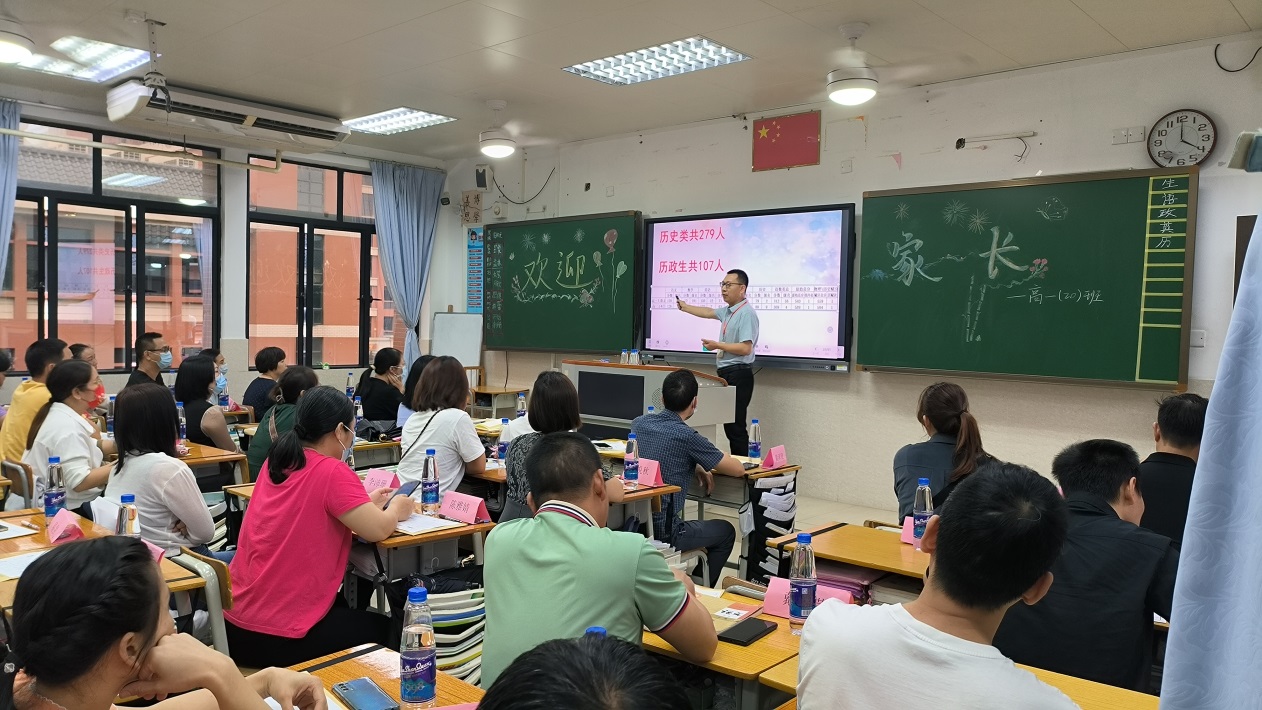 學(xué)校黨委書記、校長董再明對高一年級家長們的到來表示熱烈歡迎。他表示,經(jīng)歷了三年疫情,在高一選科分班后能現(xiàn)場來到學(xué)校,親身體驗和了解孩子生活學(xué)習(xí)的環(huán)境,非常難得。學(xué)校也為此進行了精心籌備,目的就是希望家長借此機會,面對面跟年級、班主任和科任老師全面了解孩子的學(xué)習(xí)和生活情況,了解桂山的辦學(xué)理念和目標(biāo)。他希望,家校攜手同行,同心共育,為孩子的全面發(fā)展而不懈努力!