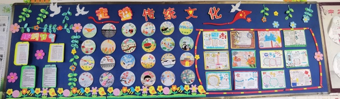 活動(dòng)期間,參賽班級(jí)緊緊圍繞著“走進(jìn)中華優(yōu)秀傳統(tǒng)文化”的活動(dòng)主題,班主任組織學(xué)生們根據(jù)中華傳統(tǒng)文化中經(jīng)典元素自主設(shè)計(jì)、制作教室板報(bào),有的以京劇為主題,有的以愛國(guó)故事為背景,有的以二十四節(jié)氣為主題,既有愛國(guó)主義成語(yǔ)詩(shī)詞,也有典故及時(shí)代新解,學(xué)生享受并體會(huì)傳統(tǒng)文化魅力給予的熏陶、感染和教育,感受民族自豪感與家國(guó)情懷,以此更好的促進(jìn)了班級(jí)文化建設(shè),讓中華傳統(tǒng)文化在班級(jí)中生根發(fā)芽。