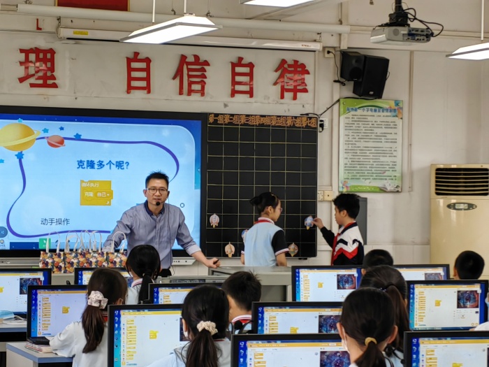 本次教研活動以“重信息素養(yǎng),育創(chuàng)新意識”為主題,研討活動分課例展示、評課議課和主題研討三個環(huán)節(jié)。第一環(huán)節(jié)中,海洲第一小學的郭偉斌老師和新徽學校的陳微玲老師都為教研組成員展示了《飛船游太空》這一課例。同課卻不同構,郭老師注重學生整體思維的提高,在教學中創(chuàng)設了三個活動,從“飛船”到“流星現(xiàn)太空”,再到“流星雨下落”,學生在三個活動中互幫互助,協(xié)作學習,在問題導向引導中逐步掌握技能。陳老師則注重信息技術理論的培養(yǎng),通過引入微課與學習單,極大豐富了課堂的趣味性與生動性,學生在老師的引導下逐步掌握每一個操作技能。兩位老師精彩的課堂可謂是各具特色,為現(xiàn)場觀摩老師留下了深刻印象。
