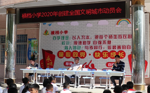 今年是中山創(chuàng)建全國文明城市的關(guān)鍵之年,為奮力實(shí)現(xiàn)全國文明城市“六連冠”的目標(biāo),7月17日上午八點(diǎn)正,橫檔小學(xué)集合全體師生在教學(xué)樓舉行動(dòng)員會(huì),向大家發(fā)出以下倡議: