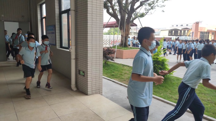 學(xué)生們逃生到指定位置后,各班快速統(tǒng)計(jì)人數(shù)后報(bào)告學(xué)校。整個(gè)演練過程有序、高效。演練結(jié)束后,揭平航副校長組織全體師生進(jìn)行活動(dòng)總結(jié),他期望全校師生能以這次緊急安全演練為契機(jī),繼續(xù)加強(qiáng)安全知識(shí)的學(xué)習(xí),在校、在家、在社會(huì)全方位提高自防自救的意識(shí)和本領(lǐng)。