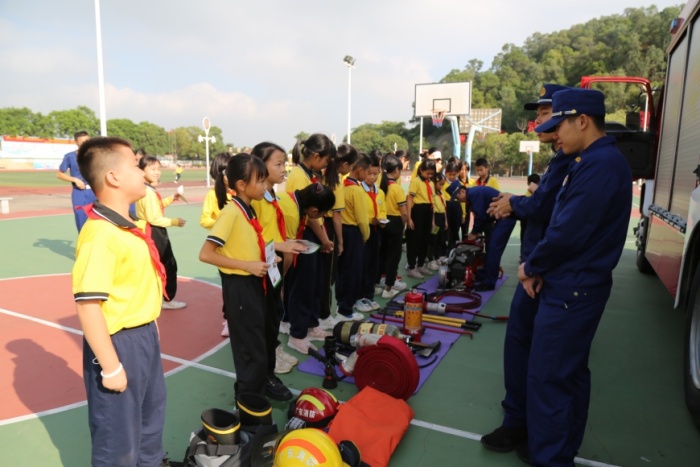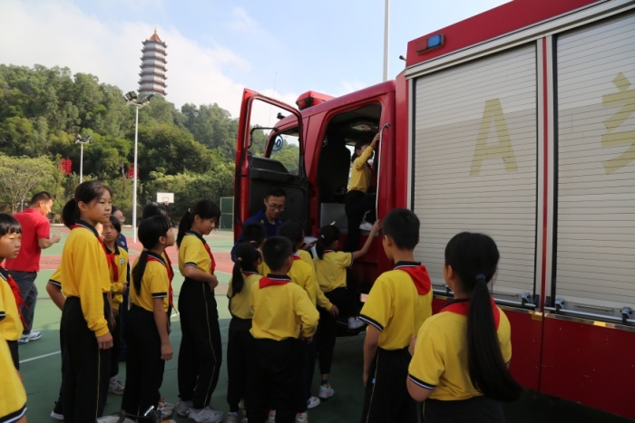 為了讓同學們進一步了解消防安全知識,增強消防安全意識,在消防知識講座后,培紅小學組織10月份的“六育標兵”作為學生代表參加了消防車及消防救援器械觀摩活動。孩子們零距離接觸消防戰(zhàn)士、消防器械,對“關注消防,珍愛生命”的意識有了更深入的體會?;顒又?,消防員詳細地介紹了消防車功能并講解了各種消防器械的使用方法,邀請同學們現場體驗了各種消防器材,登上消防車,感受消防員的工作狀態(tài)。