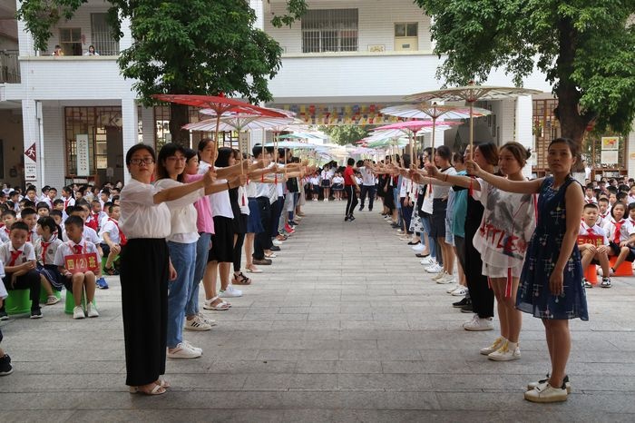 這是一場別出心裁,意義非凡的開學(xué)典禮,讓一年級(jí)的新生們難忘和自豪。一年級(jí)家長代表排成兩排在過道上為孩子們撐起了美麗的油紙傘,寓意著新小大家庭會(huì)為孩子們遮風(fēng)擋雨,呵護(hù)其快樂成長。而一年級(jí)的新生們?cè)诹昙?jí)哥哥姐姐的引領(lǐng)下踏著自信的步伐通過過道,并在級(jí)組長萬麗老師的帶領(lǐng)下鏗鏘有力得宣讀入學(xué)誓詞。全體師生為新生們鼓起了熱烈的掌聲,在未來的學(xué)習(xí)生活里,二到六年級(jí)的同學(xué)們都將成為一年級(jí)新生們學(xué)習(xí)上的好榜樣,生活上的好幫手。