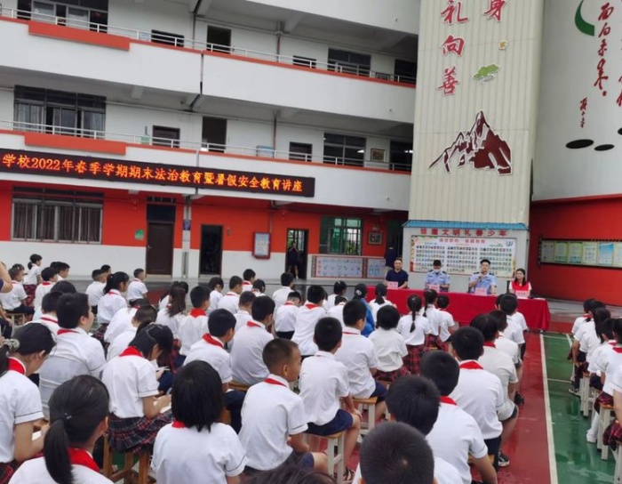 張華校長在總結(jié)中強調(diào)防溺水等重要性,提醒學(xué)生遵紀(jì)守法、運用法律維護(hù)自己的合法權(quán)益、預(yù)防犯罪、打擊犯罪及自我防范。