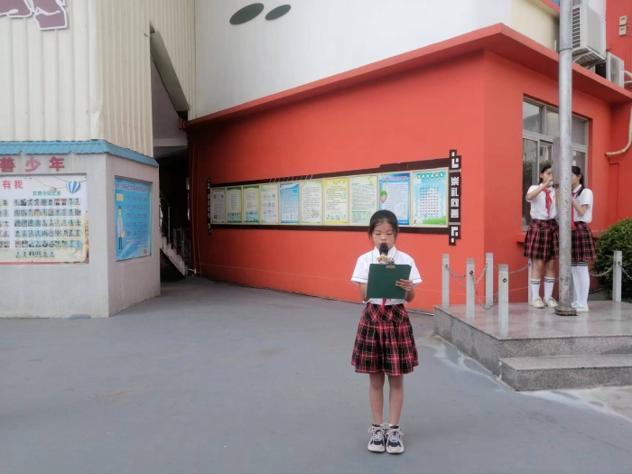 6月27日上午,四(4)班黃曉雯同學在國旗下,向全體師生發(fā)出了“從自身做起,共同抵制毒品”倡議。