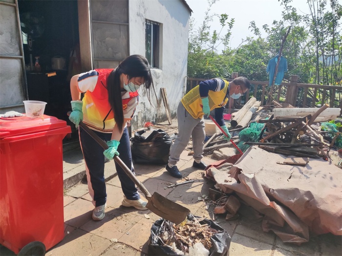 志愿者們十分關心老人的身體狀況和日常生活,噓寒問暖,閑話家常,現(xiàn)場氣氛其樂融融。隨后,在征得老人的同意后,社工便帶領志愿者們開始打掃房屋、清理庭院垃圾、衛(wèi)生死角及雜草,以實際行動踐行雷鋒精神。