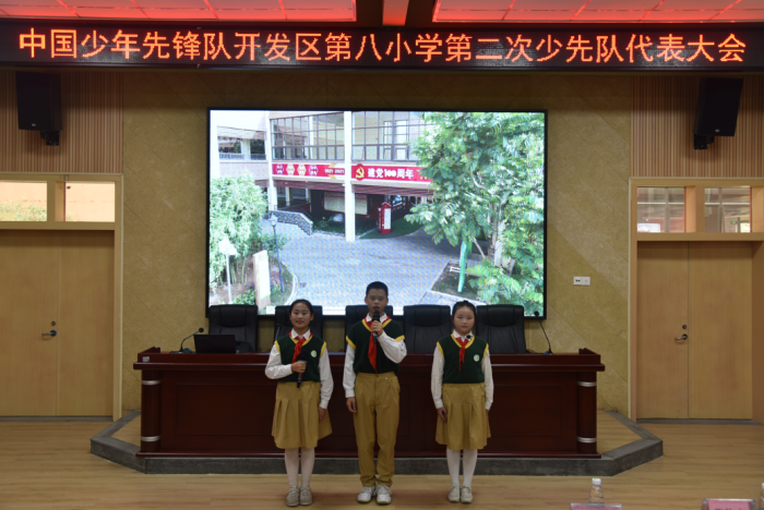 隨后,優(yōu)秀少先隊(duì)員代表向大會(huì)獻(xiàn)詞,稚嫩的聲音響徹會(huì)場(chǎng),他們用堅(jiān)定的身姿,飽含深情的語句,莊重的誓言向大會(huì)致敬,表達(dá)作為一名少先隊(duì)員,一名少代會(huì)代表的光榮感和使命感!
