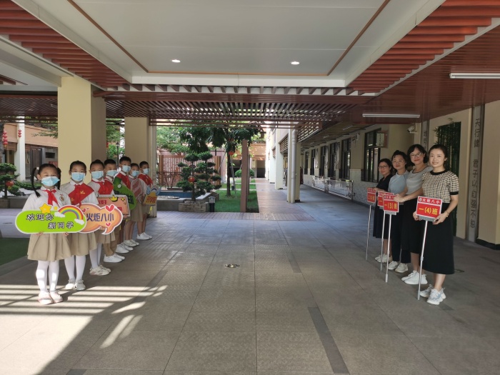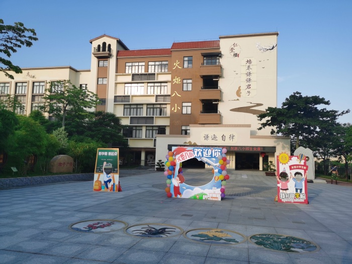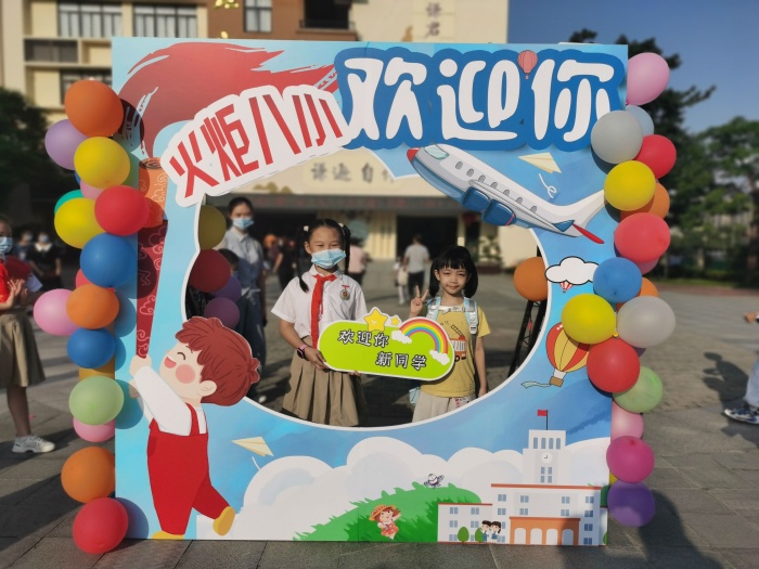 陽光正好,微風不燥,火炬八小煥然一新,教師們整裝待發(fā),準備迎接第一次踏入八小校園的孩子們。沐浴著晨光,木棉步道緩緩走來了一年級的小朋友們,他們拉著家長的手,好奇地打量著這個美麗的新學校,當踏入校門的那一刻,大隊委熱情地向他們打招呼:“歡迎你,新同學!”。映入眼簾的是寬闊的君子廣場,“火炬八小”四個大字醒目地篆刻在教學樓上。小朋友們和家長在君子廣場的展板前拍照留念,記錄下進校的美好一刻!