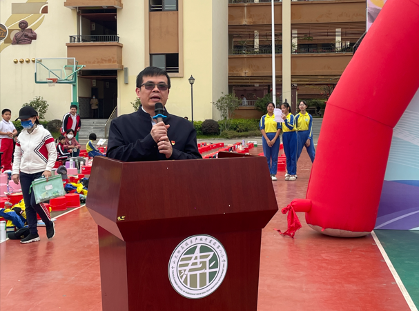 3月9日上午,全體師生齊聚運(yùn)動(dòng)場(chǎng),共同開(kāi)啟這場(chǎng)為期兩天的運(yùn)動(dòng)盛宴。隨著運(yùn)動(dòng)員進(jìn)行曲的響起,昂首挺胸的國(guó)旗隊(duì)、全校27個(gè)班級(jí)的運(yùn)動(dòng)員方隊(duì)踏著整齊的步伐走向主席臺(tái),高喊著他們的口號(hào),那昂揚(yáng)的姿態(tài)代表著勇氣和信心!鄧龍副校長(zhǎng)向全體師生致辭,送上了他的祝福與期盼。開(kāi)幕式的最后,隨著萬(wàn)小兵校長(zhǎng)有力的宣告聲,運(yùn)動(dòng)會(huì)就此拉開(kāi)帷幕。
