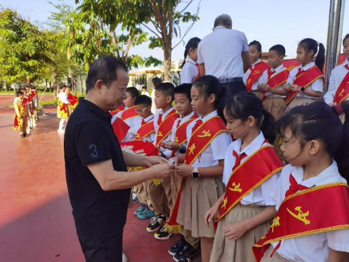 為深入貫徹落實(shí)習(xí)近平總書(shū)記關(guān)于少年兒童和少先隊(duì)工作的重要指示精神,引導(dǎo)少年兒童從小學(xué)習(xí)做人、從小學(xué)習(xí)立志、從小學(xué)習(xí)創(chuàng)造,切實(shí)增強(qiáng)全校少先隊(duì)員的光榮感和組織歸屬感,傳承紅色基因,堅(jiān)定理想信念,進(jìn)一步加深對(duì)黨的了解和認(rèn)識(shí),唱響“感黨恩、跟黨走”這一時(shí)代主旋律,爭(zhēng)做新時(shí)代少年君子。 10月10日,火炬第八小學(xué)隆重舉行2021-2022學(xué)年下學(xué)期紅領(lǐng)巾獎(jiǎng)?wù)隆吧倌昃印碧厣卤碚没顒?dòng)。
