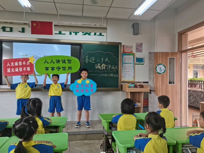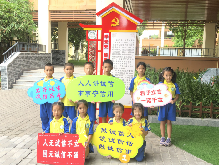 君子立言,一諾千金;君子處事,誠信為本。誠信是中華民族優(yōu)秀傳統(tǒng)美德,是做人立身立德之根本。為弘揚誠信立德之風,營造“做誠信人、說誠信話、做誠信事”的校園氛圍,根據(jù)中山市教育和體育局關于開展“誠信宣傳進校園”活動的要求,結合八小“君子文化”辦學特色,火炬開發(fā)區(qū)第八小學于9月23日開展“喜迎二十大 誠信伴成長——誠信宣傳進校園”教育活動,教育學生做到知行合一,使誠信觀念扎根校園,深入人心,以實際行動迎接黨的二十大勝利召開。