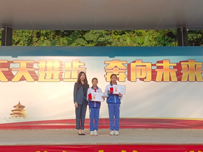 在過去的2021-2022學(xué)年度“紅領(lǐng)巾獎?wù)隆痹u比中,學(xué)校共有3位隊(duì)員獲得個人四星章,24位隊(duì)員獲得個人三星章?;顒右潦迹箨?duì)輔導(dǎo)員陳一蕾老師宣讀了獲獎名單。
