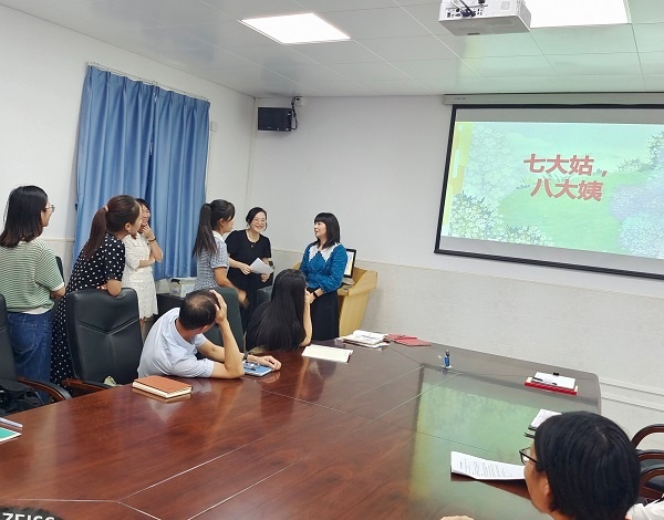接著,在歡送會“話說彭老師”的游戲環(huán)節(jié)中,同事以“愛崗敬業(yè)”“熱愛生活”等角度,對彭老師的師德師風(fēng)予以高度評價,并為彭老師送上真切的祝福。