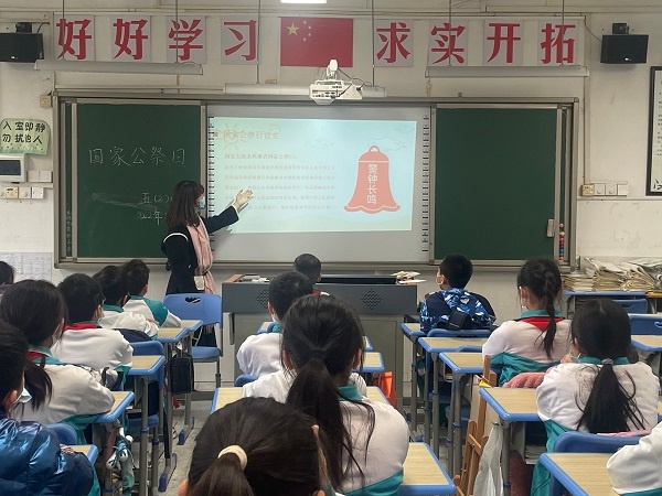 當(dāng)天,全校開展了主題班隊課活動。中隊輔導(dǎo)員通過視頻、圖文向?qū)W生講述“南京大屠殺”的歷史,闡述設(shè)立國家公祭日的意義,激勵全體少先隊員努力學(xué)習(xí),立志成才,不斷增強社會責(zé)任感和歷史使命感。隊員們目睹中國人民受苦的慘烈的畫面,難以抑制內(nèi)心的悲痛,很多隊員熱淚盈眶。大隊輔導(dǎo)員黃老師動容地號召少先隊們:“我們一定不要忘記歷史,尤其是國家的苦難史。我們要以史為鑒,努力學(xué)習(xí),長大后成為有用的人,把祖國建設(shè)得更加強大,不讓屈辱重演,讓人民過上幸福美好的生活?!备靼噍o導(dǎo)員也號召隊員們勿忘歷史,努力學(xué)習(xí),努力成為祖國的建設(shè)者和接班人。