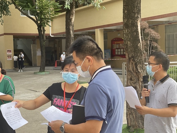 劉光旗校長初次上報(bào)教育主管部門,信息聯(lián)絡(luò)組通過校園廣播, 提醒全體師生立即回到教室、辦公室,減少人員交叉感染的風(fēng)險(xiǎn), 并佩戴好口罩,班主任老師回到班級(jí)組織學(xué)生并安撫學(xué)生情緒。