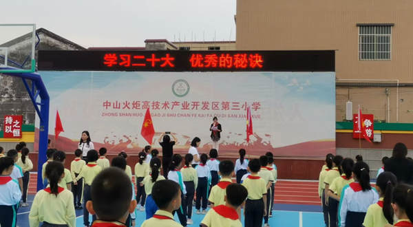 火炬開(kāi)發(fā)區(qū)第三小學(xué)黨支部、少工委組建紅領(lǐng)巾宣講團(tuán),每周利用國(guó)旗下講話開(kāi)展“宣講黨的二十大”主題活動(dòng),旨在使隊(duì)員們更加堅(jiān)定不移聽(tīng)黨話、跟黨走,懷揣夢(mèng)想,腳踏實(shí)地,刻苦學(xué)習(xí),錘煉本領(lǐng),以實(shí)際行動(dòng)報(bào)效祖國(guó)。