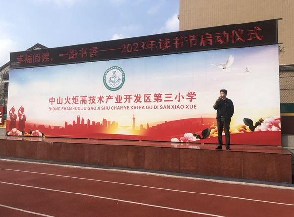 為進(jìn)一步打造書(shū)香校園,營(yíng)造濃郁的校園文化氛圍,培養(yǎng)學(xué)生良好的讀書(shū)習(xí)慣,2023年4月17日上午,火炬開(kāi)發(fā)區(qū)第三小學(xué)開(kāi)展了“幸福悅讀,一路書(shū)香”讀書(shū)節(jié)啟動(dòng)儀式。儀式由語(yǔ)文科組長(zhǎng)胡晶晶老師主持。