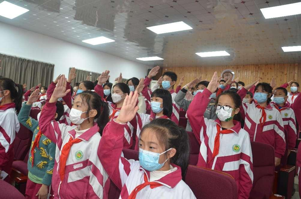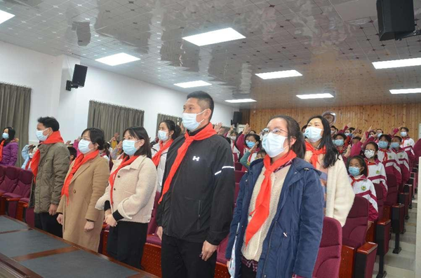 新一屆的少代會(huì)在莊嚴(yán)的少先隊(duì)儀式中拉開帷幕,鮮艷的紅領(lǐng)巾映紅了整個(gè)會(huì)場(chǎng),全體參會(huì)人員莊嚴(yán)肅立,激昂歌唱,共同向隊(duì)旗致敬。