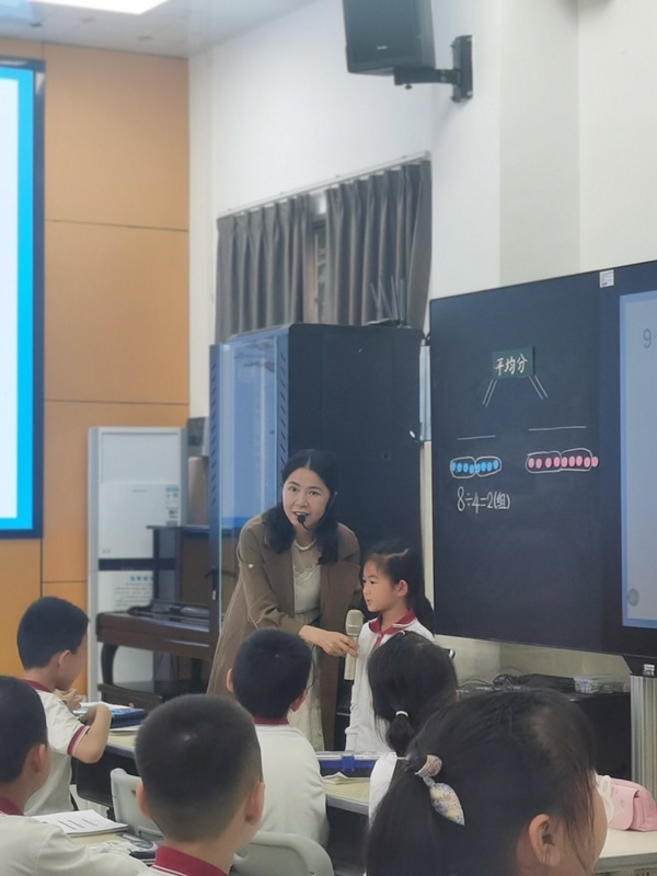 活動(dòng)中,江一雪老師執(zhí)教了課例《有余數(shù)的除法》。課堂氣氛活躍,師生配合默契,學(xué)生學(xué)習(xí)興趣濃厚,整節(jié)課輕松、愉快、流暢。課堂中,江老師以學(xué)生為主體,善于引導(dǎo)學(xué)生進(jìn)行自主探究或合作學(xué)習(xí),有意識(shí)地進(jìn)行思維能力的訓(xùn)練,讓每個(gè)學(xué)生感受學(xué)習(xí)數(shù)學(xué)的樂(lè)趣。
