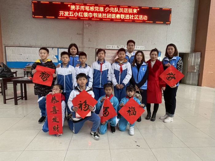 為弘揚(yáng)中華優(yōu)秀傳統(tǒng)文化,培養(yǎng)一顆感恩的心,加深學(xué)生對(duì)歷史優(yōu)秀文化的理解,激發(fā)他們的愛(ài)黨情懷和愛(ài)國(guó)熱情,增強(qiáng)民族自豪感和使命感。12月29日下午,第五小學(xué)黨支部、少工委組織紅領(lǐng)巾書(shū)法社團(tuán)的學(xué)員和有書(shū)法興趣愛(ài)好的教師到城東社區(qū)小引小區(qū)開(kāi)展“攜手揮筆感黨恩 少先隊(duì)員送福來(lái)”活動(dòng)。