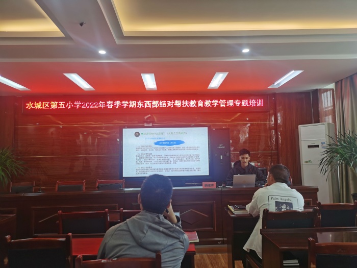 第3周的教學幫扶重點是從教學實踐提升至教育理論。從6月15日至6月23日,開發(fā)區(qū)第一小學的3位老師聯(lián)合在六盤水市支教一年的李晶老師相繼舉辦講座。6月15日,賴建輝老師舉辦講座《傳承、創(chuàng)新、發(fā)展——新時代小學體育與健康課程新思路》,賴老師結(jié)合2022年體育新課標的新變化引導(dǎo)聽者如何在課堂教學中找準著力點,然后把新體育課標落細、落實、落好。6月16日,李晶老師在六盤水市水城區(qū)第五小學與水城區(qū)第二幼兒園教學研討活動中舉辦講座《好習慣,好人生》, 李老師建議幼兒教師應(yīng)智慧結(jié)合兒童“敏感期”的特點,引導(dǎo)家長從心理準備、習慣培養(yǎng)和物品準備三方面著手,幫助兒童從幼兒園階段順利過渡到小學階段。講座得到聽者的一致認同。6月20日,黃玲老師舉辦講座《聚焦“雙減”:德育引領(lǐng),以愛同行》, 分別從德育課程、校園文化、活動實踐和班級管理四個方面,介紹了開發(fā)區(qū)第一小學的德育工作開展情況,闡述個人向陽花般美好的德育理念,使聽者對德育工作有了進一步、深一層的理解。6月23日,年經(jīng)的賴志城老師以開發(fā)區(qū)第一小學訓(xùn)練隊的訓(xùn)練情況和大課間的活動案例成功舉辦講座《我運動,我快樂,“雙減”背景下課余體育活動的開展》,使聽者輕松地領(lǐng)悟到課余體育活動“既鍛煉身體,又愉悅身心”的內(nèi)涵。