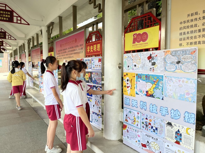 在各項(xiàng)科技活動(dòng)的開展中,同學(xué)們都積極自主,放飛想象。在“科技小發(fā)明小制作”的活動(dòng)中,一至六年級學(xué)生取靈感于生活,腦筋動(dòng)一動(dòng),廢物即搖身一變成精致的航天模型、宇宙模型、機(jī)器人模型等。在“科學(xué)知識競賽”中,三至六年級派出的參賽代表都旗鼓相當(dāng),答題如龍爭虎斗。經(jīng)過激烈的角逐,分別由三2班、四3班、五7班、六3班獲得知識競賽的特等獎(jiǎng)?;谝?、二年級學(xué)生的年齡特點(diǎn),科學(xué)老師貼心地以“創(chuàng)意撕紙比賽”和“噴氣小車團(tuán)體”取代難度較大的知識競賽,孩子們都超級喜歡!孩子們還超級喜歡科學(xué)老師精心挑選以“自然生命”為主題的“科普大電影”。無論是一年級的《藍(lán)色星球》,還是六年級的《流浪地球》,都旨在提高學(xué)生保護(hù)環(huán)境的意識,讓學(xué)生懂得愛護(hù)動(dòng)植物與珍愛生命,加入保護(hù)地球行列。最吸引眼球的是以“神舟十三號航天員太空出差六個(gè)月,遠(yuǎn)征星辰大海后返回地球”為主題的科學(xué)手抄報(bào)。展示長廊后,經(jīng)過的老師與學(xué)生都不由自主地駐足觀看。
