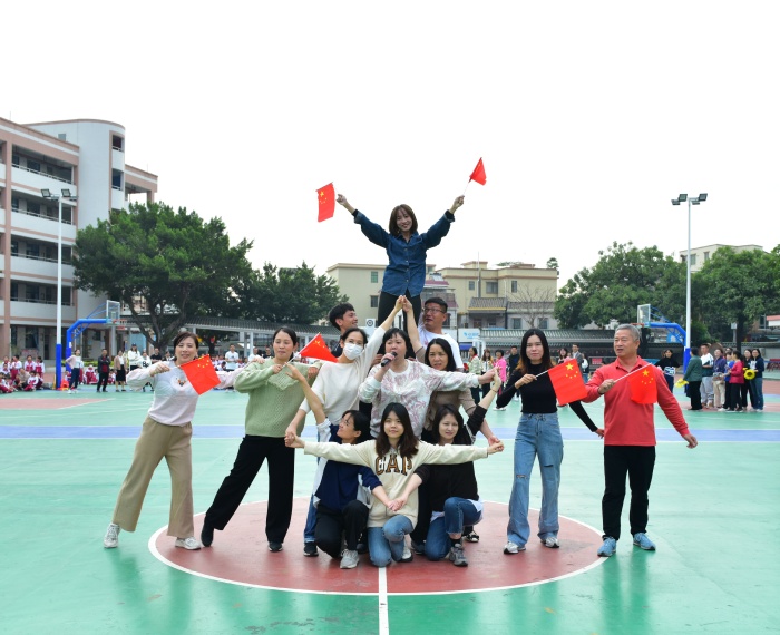 7:50左右,全體學(xué)生聚集在操場(chǎng)的外圍,和全體教師一起慶祝美好的節(jié)日。在吳君麗副校長(zhǎng)的組織下,一、二、三、四、五、六年級(jí)六支隊(duì)伍積極開(kāi)展多姿多彩的慶祝活動(dòng)。慶祝活動(dòng)包括“心手相牽共成長(zhǎng)”、“歡樂(lè)傳遞共分享”(U型槽傳球游戲)、“感恩相伴共同行”(齊心協(xié)力擺造型)。全體教職工奮勇?tīng)?zhēng)先為榮譽(yù)而戰(zhàn)。他們齊心協(xié)力,朝氣蓬勃,賽出了魅力,拼出了精彩,也將團(tuán)結(jié)一致、斗志昂揚(yáng)的精神發(fā)揮得淋漓盡致。運(yùn)動(dòng)會(huì)上加油聲、吶喊聲、歡笑聲此起彼伏。