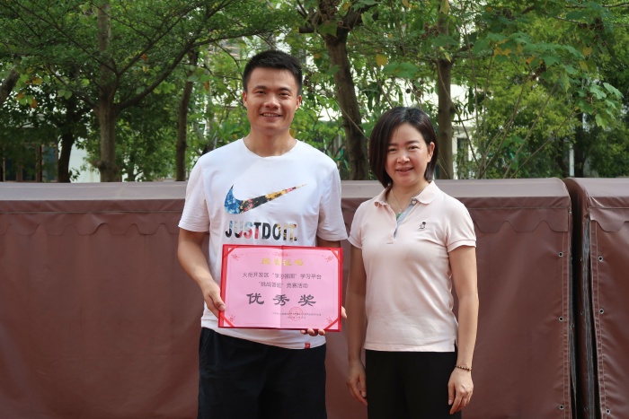 經(jīng)過(guò)一番激烈的角逐,開(kāi)發(fā)區(qū)一幼盧杰權(quán)老師獲得了“優(yōu)秀獎(jiǎng)”的好成績(jī)。2021年5月17日上午,在升國(guó)旗儀式下,開(kāi)發(fā)區(qū)一幼為盧杰權(quán)老師舉行了隆重的頒獎(jiǎng)儀式,蘇丹娜副園長(zhǎng)為其頒發(fā)獲獎(jiǎng)證書(shū)。