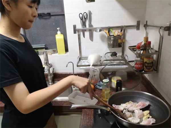 “氣味相投”的內(nèi)容是跟父母學(xué)做一道他們喜歡的菜。做飯時(shí),同學(xué)們或許會(huì)想起,清晨被餐桌上飄香的早餐喚醒的經(jīng)歷和傍晚總是放下書包,就能洗手吃飯的幸福。餐桌上的不是山珍海味,卻是我們最熟悉也最值得懷念的味道;廚房里忙碌著的也不是五星級(jí)大廚,卻是我們至親至愛的人。平凡的煙火氣里,是父母日復(fù)一日操勞著,讓我們歸屬人間煙火一盞。屬于父親的節(jié)日里,學(xué)生們親自動(dòng)手,為父親獻(xiàn)上一道菜肴,安撫他的腸胃與心靈,只希望讓他也能在奔波勞累中休息一會(huì),感受到溫暖與欣慰。
