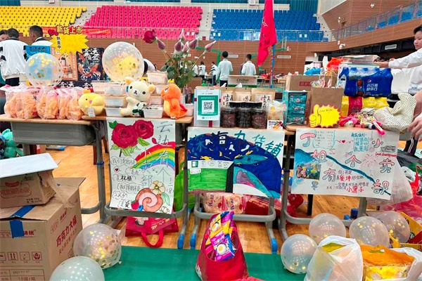 各班攤位義賣(mài)成員既有學(xué)生也有家長(zhǎng)志愿者,有人負(fù)責(zé)擺放物品,有人負(fù)責(zé)吆喝攬客,還有人負(fù)責(zé)收款記賬。伴隨著同學(xué)們的吆喝聲,現(xiàn)場(chǎng)氣氛漸漸熱烈起來(lái),整個(gè)體育館變成了愛(ài)心涌動(dòng)的海洋。