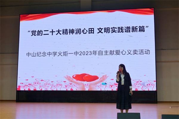 為加強(qiáng)立德樹(shù)人,展現(xiàn)當(dāng)代學(xué)生文明風(fēng)貌,中山紀(jì)念中學(xué)火炬一中德育處、團(tuán)委以即將到來(lái)的“雷鋒月”作為活動(dòng)契機(jī),以八年級(jí)各中隊(duì)為售賣(mài)攤位,充分發(fā)揮學(xué)校少先隊(duì)凝聚作用,弘揚(yáng)博愛(ài)精神,參與愛(ài)心活動(dòng),籌集愛(ài)心資金幫助困難群體,于2月27日在體育館開(kāi)展了面向全體師生的“黨的二十大精神潤(rùn)心田 文明實(shí)踐譜新篇”中山紀(jì)念中學(xué)火炬一中2023年自主獻(xiàn)愛(ài)心義賣(mài)活動(dòng)。