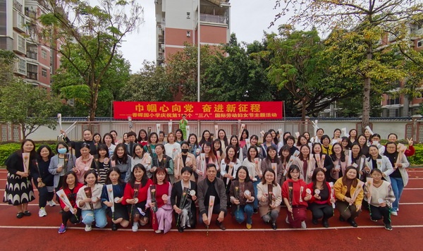 春臨盛世三月天,姹紫嫣紅映歡顏。為表達(dá)對女教職工的關(guān)懷和問候,3月7日上午,開發(fā)區(qū)香暉園小學(xué)全體師生齊聚操場,開展了主題為“巾幗心向黨 奮進(jìn)新征程”的慶祝第112個(gè)“三八”國際勞動(dòng)?jì)D女節(jié)主題活動(dòng)。本次活動(dòng)由四(3)中隊(duì)楊佳睿主持。