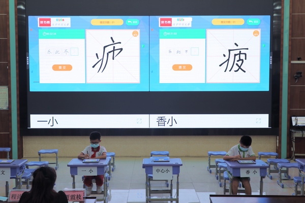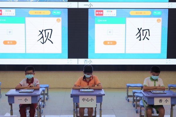 大賽以“書寫規(guī)范漢字,傳承優(yōu)秀文化”為主題,以常用漢字、成語、詩詞作為出題內(nèi)容。全區(qū)共有12支學(xué)校代表隊參賽,參賽選手通過答題板進行現(xiàn)場作答,比賽現(xiàn)場氣氛熱烈。