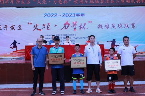 為增強(qiáng)學(xué)生體質(zhì),提升校園球類運(yùn)動(dòng)氛圍,在工作人員的精心組織下,在全體運(yùn)動(dòng)員的共同努力下,2022-2023學(xué)年火炬開發(fā)區(qū)“火炬力量杯”校園足球聯(lián)賽順利落下帷幕。9月28日,在香暉園小學(xué)操場(chǎng)舉行了隆重的閉幕式暨頒獎(jiǎng)典禮。火炬開發(fā)區(qū)文體教育局副局長(zhǎng)李建英,火炬開發(fā)區(qū)教育事務(wù)指導(dǎo)中心教研室股長(zhǎng)詹必國(guó),火炬開發(fā)區(qū)教育事務(wù)指導(dǎo)中心安全體衛(wèi)專干吳計(jì)亮,中山市紀(jì)雅學(xué)校副校長(zhǎng)袁祥樊,香暉園小學(xué)校長(zhǎng)歐陽祝棣出席了本次活動(dòng),香暉園小學(xué)教務(wù)主任李端生主持本次活動(dòng)。
