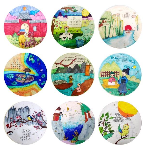 活動前,開發(fā)區(qū)香暉園小學(xué)美術(shù)教師認(rèn)真?zhèn)湔n,為每個年級和興趣班精心挑選教學(xué)內(nèi)容。一、二年級的同學(xué)用紙盤繪畫的形式表現(xiàn)詩詞中自然的活力與生機(jī);三、四年級的同學(xué)采用圓型構(gòu)圖,把圓滿之美以裝飾畫的形式展現(xiàn);五、六年級的同學(xué)從語文課本古詩著手,方寸之間直抒詩意之美。陶藝和書法興趣班的同學(xué)們合作以釉彩陶藝為形式進(jìn)行書法和繪畫,燒制出美妙和諧的詩畫作品。