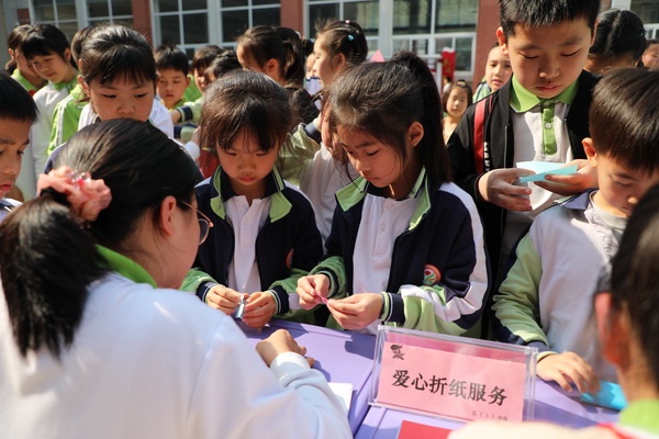 活動現(xiàn)場,愛心涌動,情暖校園,吸引了大批師生前來“趕集”。學雷鋒志愿服務集市由各中隊派出兩名隊員代表參加,同學們運用自己的特長和技能開設服務攤位,各展身手、各顯神通,提供包括清洗眼鏡、削鉛筆、作業(yè)輔導、如何快速綁鞋帶等志愿服務,切實為同學們辦實事、解難題。