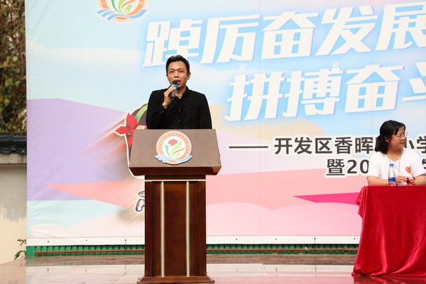 隨后,開發(fā)區(qū)香暉園小學(xué)校長(zhǎng)歐陽(yáng)祝棣對(duì)本次運(yùn)動(dòng)會(huì)表達(dá)了美好祝愿和期盼,希望孩子們能夠勇于挑戰(zhàn),敢于拼搏,發(fā)揚(yáng)“友誼第一、比賽第二”的體育道德風(fēng)尚,服從裁判、公平競(jìng)賽、賽出風(fēng)格、賽出水平,展現(xiàn)良好的精神風(fēng)貌,為班增光、為校添彩,并宣布本次運(yùn)動(dòng)會(huì)正式開幕,鼓舞人心的話語(yǔ)和鏗鏘有力的宣告迎來了陣陣掌聲。