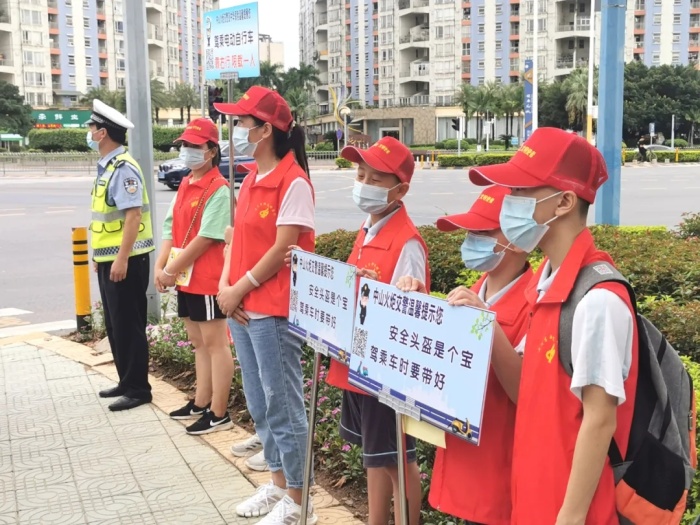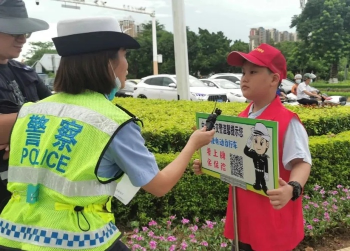 “請您戴好頭盔,安全行駛”“請勿逆向行駛”“請您在非機動車道上行駛”“請您耐心等待,綠燈亮了再走”......暑假期間,火炬開發(fā)區(qū)交警大隊多次組織新苗學校“小交警”及其家長到路面進行交通勸導。小交警”們耐心勸導現場違規(guī)行為、疏導交通秩序、幫扶困難群眾引得路人紛紛稱贊,并自覺接受教育,取得了較好的宣傳效果。