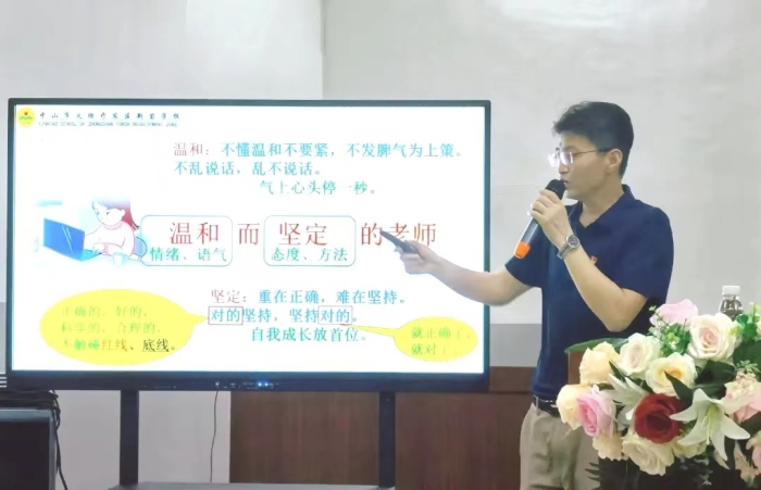 為了全面落實立德樹人根本任務(wù),進(jìn)一步提高學(xué)校教師德育工作的能力和水平,2022年11月16日晚上,新苗學(xué)校特邀中山市家校共育研究中心講師、中山市優(yōu)秀德育干部楊勇強(qiáng)副校長為新苗學(xué)校全體教師進(jìn)行了“做一位溫和而堅定的老師”德育工作主題培訓(xùn)。