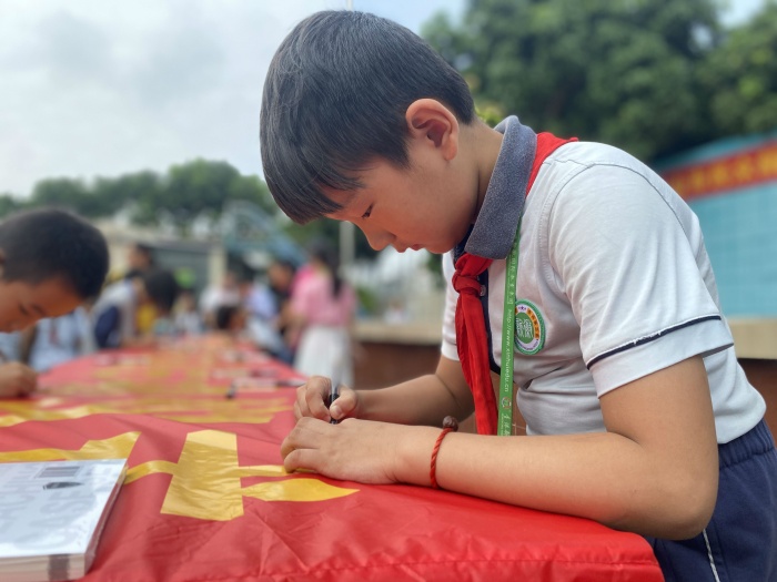 啟動儀式的高潮在朗誦國學(xué)經(jīng)典。政教處陳七靈干事帶領(lǐng)同學(xué)們朗誦國學(xué)經(jīng)典,各個年級的同學(xué)熱情高漲,聲音嘹亮。朗誦結(jié)束后,各班主任老師帶領(lǐng)5位同學(xué)進(jìn)行簽名留念。