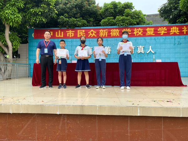 在頒獎(jiǎng)典禮上,教務(wù)處何元柱主任宣讀并表彰了上學(xué)期榮獲中山市科幻繪畫、中山市詩(shī)歌創(chuàng)作大賽、民眾鎮(zhèn)口算比賽、現(xiàn)場(chǎng)漢字書寫比賽、英語(yǔ)書寫比賽、科技節(jié)活動(dòng)、網(wǎng)課表現(xiàn)優(yōu)異的獲獎(jiǎng)學(xué)生名單,民眾鎮(zhèn)中小學(xué)特色班集體,以及民眾鎮(zhèn)小學(xué)閱讀教學(xué)比賽、小學(xué)數(shù)學(xué)論文評(píng)選、小學(xué)數(shù)學(xué)口算比賽被評(píng)為優(yōu)秀指導(dǎo)老師的獲獎(jiǎng)名單。