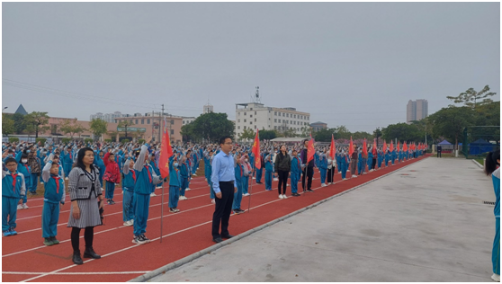 首先舉行了莊嚴(yán)的升旗儀式,全體師生排列著整齊的隊(duì)伍,精神抖擻,意氣風(fēng)發(fā)。陳校長(zhǎng)講了《2023年春季開(kāi)學(xué)思政第一課》,浪網(wǎng)小學(xué)始終將思政課建設(shè)擺在基礎(chǔ)教育改革發(fā)展的重要位置,構(gòu)筑“五育并舉”的育人體系,落實(shí)立德樹(shù)人根本任務(wù),著力培養(yǎng)德智體美勞全面發(fā)展的社會(huì)主義建設(shè)者和接班人。陳校長(zhǎng)激勵(lì)同學(xué)們要志存高遠(yuǎn),胸懷家國(guó),有一顆愛(ài)國(guó)愛(ài)校之心,嚴(yán)于律己,修身養(yǎng)性,成為“大寫的人”,努力拼搏,勇攀高峰,做一個(gè)勤奮的追夢(mèng)人。鼓勵(lì)同學(xué)們奮勇拼搏、腳踏實(shí)地,一步一個(gè)腳印,豐富自己的精神世界,爭(zhēng)做新時(shí)代的先鋒少年、逐夢(mèng)少年。同時(shí)勉勵(lì)全體師生乘風(fēng)破浪,勇毅前行,用激情與智慧續(xù)寫發(fā)展新篇,攜手共創(chuàng)浪網(wǎng)小學(xué)新的輝煌。