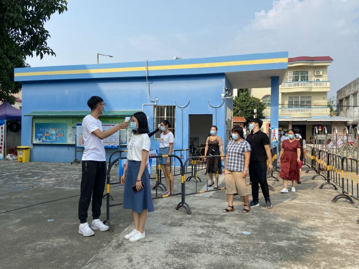 演練堅(jiān)持“演練即是實(shí)戰(zhàn)”的要求,落實(shí)落細(xì)各項(xiàng)措施。陸銳勛校長為本次演練的總指揮。本次演練分為4個(gè)流程。;流程一:校車上學(xué)、放學(xué)應(yīng)急演練。24個(gè)班主任扮演學(xué)生,分2路縱隊(duì)依次排隊(duì)測溫上下車。流程二:監(jiān)測體溫,學(xué)生排成2路縱隊(duì),梁曉靜、吳宇恒負(fù)責(zé)測量學(xué)生體溫,體溫正常方可入校。學(xué)生間隔1米排隊(duì)依次接受檢測;體溫正常者直接回教室,不要停留。假如發(fā)現(xiàn)有學(xué)生出現(xiàn)發(fā)燒癥狀(體溫37.3℃)值日行政馬上請她到臨時(shí)觀察室休息,通知該班主任打電話叫家長把孩子送到民眾醫(yī)院發(fā)燒門診部就診。流程三:午休測溫和上課出現(xiàn)異常應(yīng)急演練;在上課期間發(fā)現(xiàn)學(xué)生提出身體不適,經(jīng)簡單詢問和測量體溫,如有發(fā)燒立刻打電話給班主任,帶學(xué)生離開課室,到臨時(shí)觀察室處置。對全班學(xué)生逐一進(jìn)行體溫檢測,確認(rèn)均無異常后,由上課老師帶領(lǐng)學(xué)生由疏散專用通道離開,到備用課室上課。梁兆元主任通知消毒員室外拉起警戒線,并對課室周邊及專用通道進(jìn)行消毒處理。