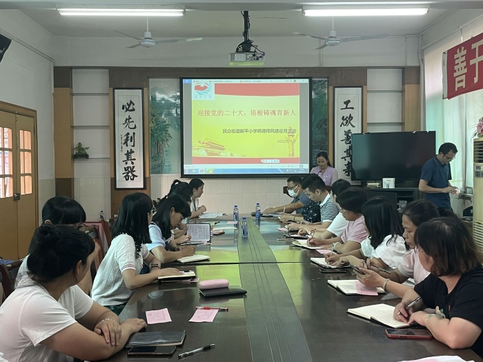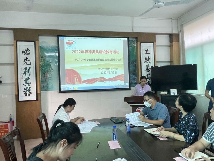 為深入貫徹落實(shí)中央八項(xiàng)規(guī)定精神,進(jìn)一步加強(qiáng)師德師風(fēng)建設(shè),弘揚(yáng)風(fēng)清氣正、廉潔自律、文明節(jié)儉、為人師表的良好風(fēng)尚,提升教師職業(yè)道德素養(yǎng),2022年9月5日下午,新平小學(xué)召開題為“迎接黨的二十大,培根鑄魂育新人”師德師風(fēng)建設(shè)月專題會(huì)議。