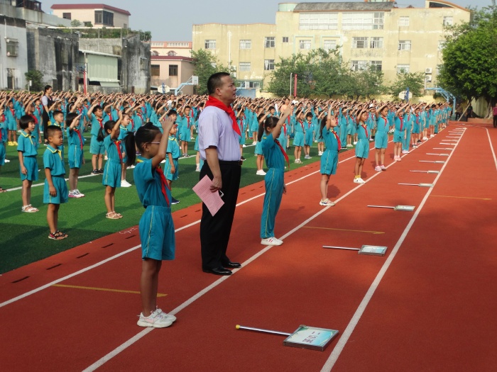 首先舉行了莊嚴(yán)的升國(guó)旗儀式。在雄壯的國(guó)歌聲中,鮮艷的五星紅旗冉冉升起,全體師生注目國(guó)旗,心懷崇敬與自豪,也滿懷對(duì)新學(xué)期的美好期待。接著,民眾中心小學(xué)馬耀強(qiáng)校長(zhǎng)發(fā)表了講話。馬校長(zhǎng)表達(dá)了對(duì)新同學(xué)與新老師的歡迎,并在中國(guó)抗日戰(zhàn)爭(zhēng)勝利紀(jì)念日暨世界反法西斯戰(zhàn)爭(zhēng)勝利紀(jì)念日來臨之際,與大家一起回顧了抗戰(zhàn)歷史。馬校長(zhǎng)還轉(zhuǎn)述了習(xí)近平總書記對(duì)新時(shí)代少先隊(duì)員的期待,希望廣大少先隊(duì)員能按照總書記指明的成長(zhǎng)方向,從小學(xué)先鋒、長(zhǎng)大做先鋒,努力成為能夠擔(dān)當(dāng)民族復(fù)興大任的時(shí)代新人。最后,陳曉雄主任與同學(xué)們一起重溫了各項(xiàng)文明行為規(guī)范,希望孩子們能繼續(xù)遵守各項(xiàng)規(guī)章制度,爭(zhēng)做文明學(xué)生,全面發(fā)展。