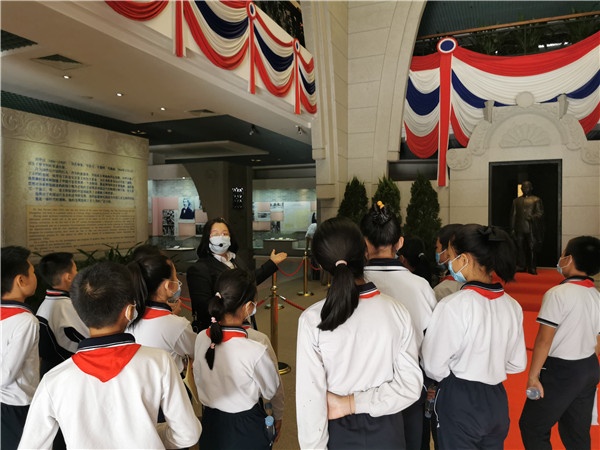 上午8:30,學(xué)校的紀(jì)念活動(dòng)還在如火如荼地進(jìn)行,少先隊(duì)大隊(duì)輔導(dǎo)員譚杏湘老師和林翠老師便帶著15名學(xué)生代表步行前往孫中山故居參加紀(jì)念活動(dòng)。儀式上,學(xué)生代表劉濼祺、劉宇婷向?qū)O中山遺像敬獻(xiàn)花籃,現(xiàn)場(chǎng)莊嚴(yán)肅穆。孫中山像在故居的正中央懸掛著,昭示著我們要不忘初心,“革命尚未成功,同志仍需努力”。隨后,在故居講解員孫老師的帶領(lǐng)下,學(xué)校宣講紅色基因文化的導(dǎo)游隊(duì)的15名學(xué)生代表到紀(jì)念館進(jìn)行了歷史知識(shí)學(xué)習(xí)。孫老師娓娓道來,大家聽得津津有味。